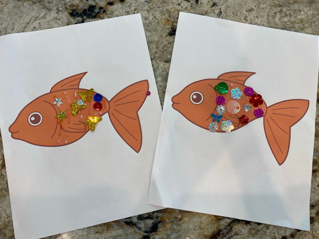 -Fish scale craft: I printed some fish then had my littles add “scales” to them using sequins.