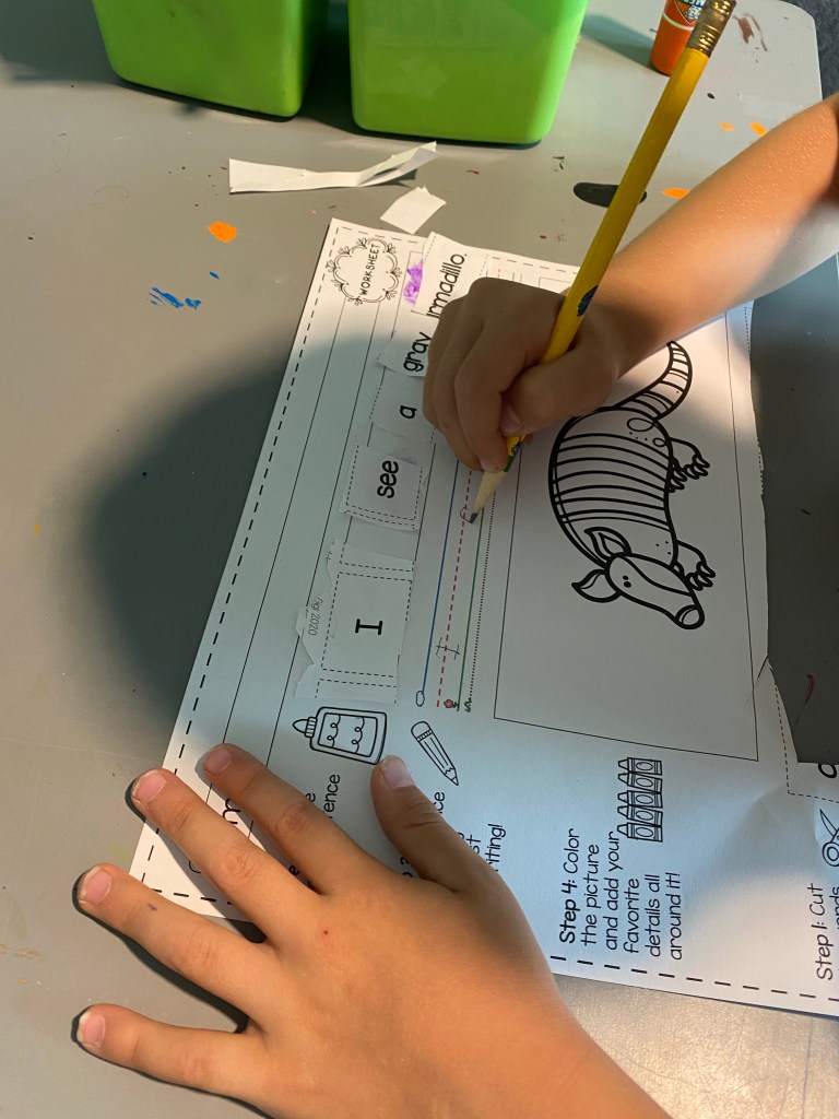 –Animal sentence builder page: My little really enjoyed doing this one! The set comes with a bunch of pages with different animals on them. You just have your little cut out the words then use them to make a sentence. After they glue the sentence down, they practice writing it.