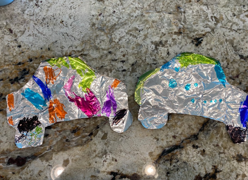 -Tinfoil car coloring: I cut cars out of tin foil and had my littles decorate them with Sharpie markers.